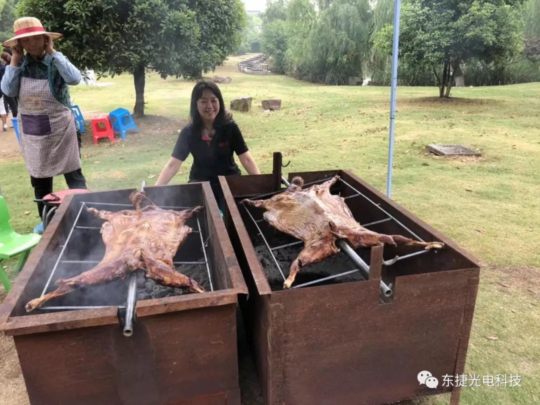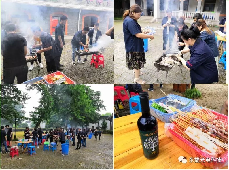 當日的天氣不甚晴朗,到達目的地的時候才發現地上已是一片潮濕,索性此刻雨水也正做停歇,倒像是特意為我們留出的空檔。大家一同步入景區,浸潤在山腳下的清新空氣中,對于這次的戶外拓展更增了幾分期待。轉過回廊,邁過草坪,也正是午飯時間了,大家趕緊張羅起本次活動中的“重頭戲”——燒烤。眾人紛紛搬好桌椅,接著又有序的領取燒烤用的食材、餐具。八人一桌,負責燒烤的、研究調味的、端取食物的……各自分工,其樂融融而又井然有序。天空中偶有水珠落下,卻絲毫澆不滅眾人心中的喜悅之情。氣氛漸入高潮,響應領導的號召,各部門紛紛表示將在接下來的工作中齊心協力,共創佳績。