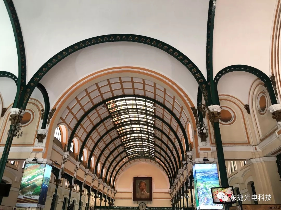 最后一站是位于胡志明市中心的中央郵局,這是一座法國殖民統治時期留下的舊建筑。郵局始建于1886年,由設計巴黎埃菲爾鐵塔的法國建筑師設計,擁有一百多年的歷史,因此中央郵局又名百年郵局。走進郵局,目光所及的拱頂、花窗、柜臺、吊燈、電話間、郵筒等等,都散發著濃郁的歐洲古典氣息。目前,這座郵局也已被改造成了發送明信片的指定地點,同時也是專賣越南紀念品的綜合市場。